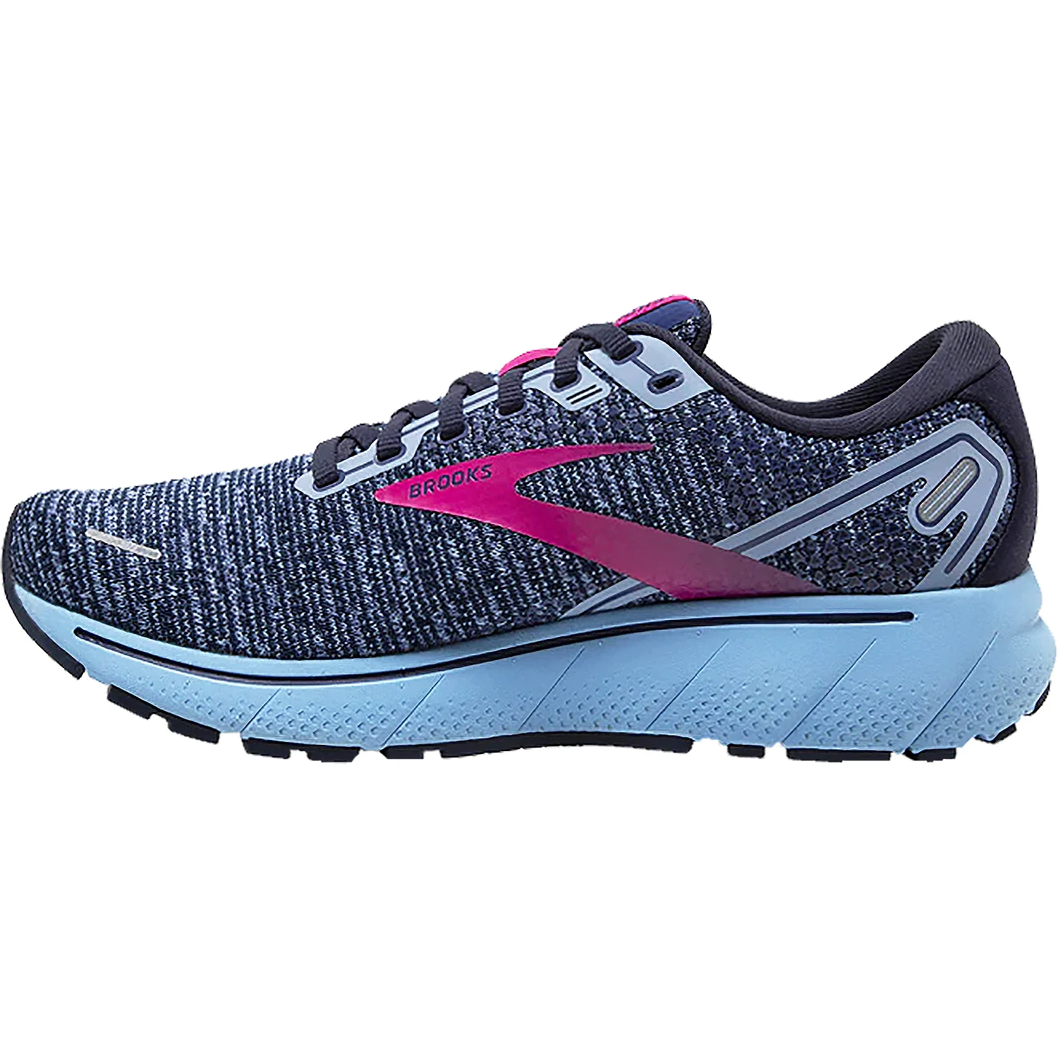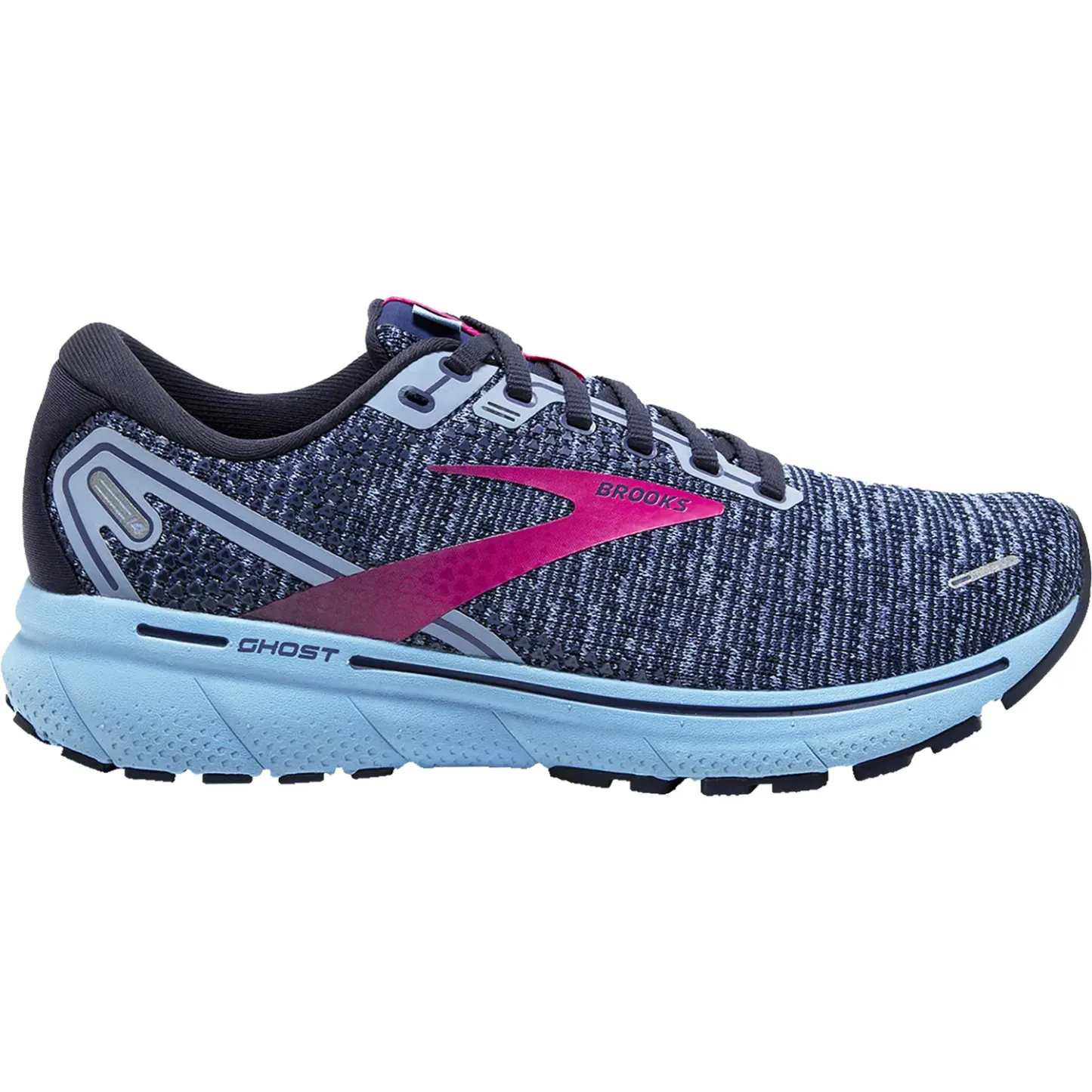 These Brooks Ghost 14 Peacoat/Blissful Blue/Fuchsia Mesh Women's Shoes have the following features:
